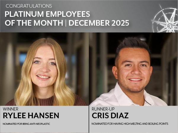 The Platinum of the Month award is a testament to the outstanding individuals who embody the core values of FOCUS. Please congratulate the December 2025 PLATINUM of the month employees!   Winner: Rylee Hansen Nominated by: Christian Broberg I am nominating Rylee for being ANTI-NEOPLASTIC, though she exhibits many PLATINUM characteristics on a consistent basis. […]